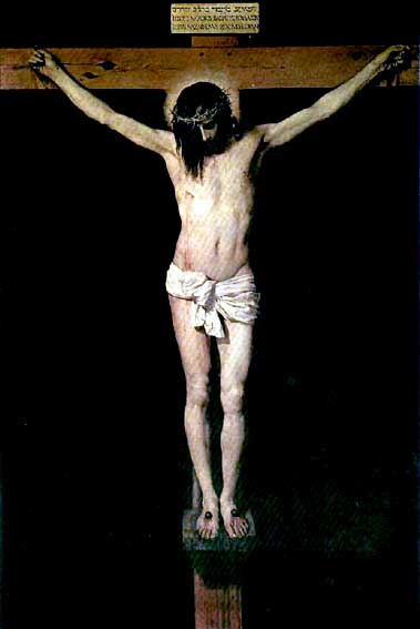 into the pole and raised poor Jesus up so His toes barely touched the floor. The