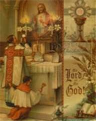 Behold! In the midst of this desert of sinfulness and helplessness there rises before our eyes an altar. A priest ascends the steps; a supernatural, indelible mark is impressed upon his soul. He places upon the altar a chalice and a host. From his lips proceed a few omnipotent words which he pronounces over this chalice and this host--and, O wonder! The Body and Blood of the Son of God are present upon the altar. Earth awakens, its exiled children arise; they draw nearer and nearer; they gather about the altar, and from millions and millions of hearts ascend humble and grateful prayers. Songs of praise resound; fervent petitions are heard; and from on high, from heaven's heights, resound melodies that betoken love and forgiveness, blessings and joy. Heavenly spirits proclaim glory to God and peace to men.