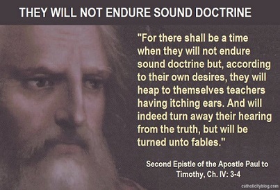 The unwillingness to "endure sound doctrine" is not only a failing of the Protestants, but of liberal Catholics themselves who live out of their heads and become "cafeteria Catholics", picking and choosing only what teachings they like.